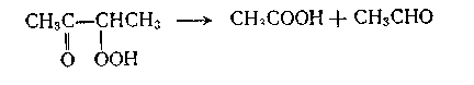 α-Кетогидропероксид, в свою очередь распадается с образованием уксусной кислоты и ацетальдегида