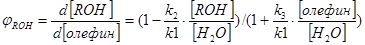Н2О + R+; -H+(k1) ↔ ROH + R+; -H+(k2) ↔ ROR, R+ + олефин