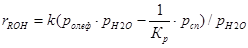 При гидратации олефинов вода всегда находится в избытке, поэтому тормозящим влиянием спирта можно пренебречь: