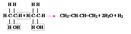 Сырьём для получения бутадиена служит этиловый спирт. Получение бутадиена основано на реакциях дегидрирования и дегидратации спирта. Эти реакции идут одновременно при пропускании паров спирта над смесью соответствующих катализаторов: