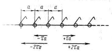 Пространственная решетка состоит из системы узлов — кристаллографических точек. Следует различать понятия «пространственная решетка» и «кристаллическая решетка» (или «структура кристалла»), предусматривающие в первом случае определенную совокупность кристаллографических, а во втором — материальных точек. Трансляция. Представим себе бесконечный ряд кристаллографических точек, расположенных по прямой линии на одном и том же расстоянии а одна от другой, определяемом величиной и направлением бивектора