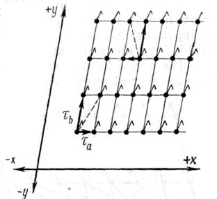 Скалярные величины — кратчайшие расстояния а и соответственно b — между ближайшими узлами сетки являются ее периодами идентичности (в направлении осей х и соответственно у).