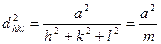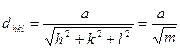 В случае кубической сингонии величина межплоскостного расстояния, выраженная в единицах периода идентичности a, как функция (hkl) выражается уравнением