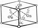Рис. 24. Октаэдрические и тетраэдрические междуузлия в плотной кубической упаковке