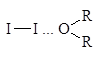 Как основания Льюиса эфиры образуют комплексы с галогенами, в которых эфир играет роль донора, а галоген - акцептора пары электронов. Раствор йода в эфире окрашен в коричневый цвет в отличие от фиолетовой окраски йода в алканах.