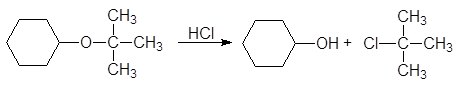 Особенно склонны к расщеплению третичные аллильные и бензильные эфиры. Третичный бутиловый эфир расщепляется соляной кислотой при обычной температуре по механизму SN1: