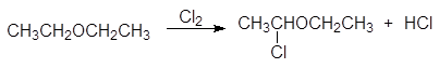 Подобно алканам, простые эфиры вступают в реакцию радикального галогенирования, однако галогенирование эфиров отличается высокой региоселективностью и осуществляется в a-положение по отношению к атому кислорода: