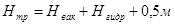 - высота, отвечаемая напору, затрачиваемому на преодоление гидравлических сопротивлений в трубе и создания скоростного напора в барометрической трубе; 0,5 – запас высоты на возможное изменения барометрического давления, м.