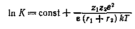 Из уравнения следует, что из физических свойств растворителя, определяющих константу равновесия, основным является диэлектрическая проницаемость. Действительно, почти во всех случаях можно установить весьма простую корреляцию между константами равновесий разнообразных процессов и диэлектрической проницаемостью.