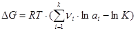 Чтобы связать ЭДС с константой равновесии, используют изотерму Вант – Гоффа. Если предположить, что реакция (1.1.1) протекает в жидком растворе, то: