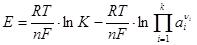 С учетом этого получают общее выражение ЭДС электрохимической цепи или уравнение Нернста: