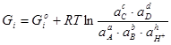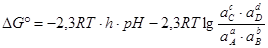 Для линий чисто химических равновесий энергия Гиббса вычисляется по формуле: