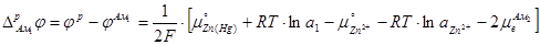 В результате этих двух электродных процессов происходит перенос металлической ртути из левой части в правую, который направлен на выравнивание уровней ртути. При этом перенос 1 г-экв ртути соответствует прохождению через систему 1 фарадея и электрической работе EF. Поскольку источником этой энергии является потенциальная энергия