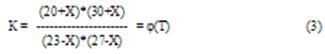 Решая уравнение (3) относительно Х при различных температурах, получаем два значения корня уравнения (3), приведенных в таблице 1.