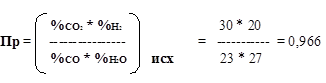 Решение этих уравнений относительно %СО является решением квадратного уравнения. Один из корней этого уравнения положительный, а другой всегда отрицательный и не имеет физического смысла.