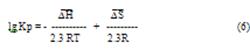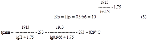 Константа равновесия реакции может быть рассчитана по эмпирическому уравнению:
