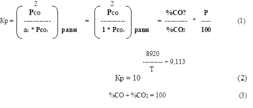 Р * %CO² + Кр * 100%СО - 100² * Кр = 0 (4)