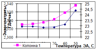 Таблица 7. Зависимость энергозатрат от расхода ЭА при разных температурах подачи ЭА