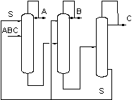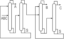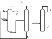 Экстрактивный агент должен направляться только в ту колонну (колонны), где его применение необходимо для разделения смеси. Поэтому иногда целесообразно применение последовательно соединенных комплексов экстрактивной ректификации (рис.4 а).