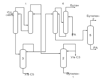 Рис.5. Схема процесса разделения бутан-бутиленовых смесей: