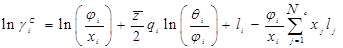 рассчитывается непосредственно по уравнению UNIQUAC с использованием параметров площади и объема Ван дер Ваальса, рассчитанных по индивидуальным структурным группам :