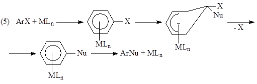 Например, для реакции нуклеофильного замещения в ароматическом ядре ArX (некаталитической, катализируемой комплексами металлов или индуцированной переносом электронов с ArX и на ArX) установлено 8 механизмов: