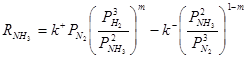 Коэффициент m = 0.5 в случае железного катализатора, k+/k– = K – константа равновесия реакции