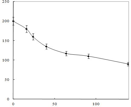 Как показано на рисунке 12, концентрация изобутилового эфира МФК уменьшается в 1,7 раза в течение 70 – 90 часов.
