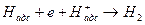 Образующиеся при реакции электрон и адсорбированньий атом водорода в условиях кислой и слабощелочной среды взаимодействуют с ионом водорода по реакции