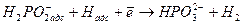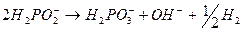 В условиях щелочной среды (рН> 9) образующиеся при окислении гипофосфита в фосфит электрон и атом водорода из связи Р — Н, взаимодействует с водой, приводят к молизации по типу электрохимической десорбции: