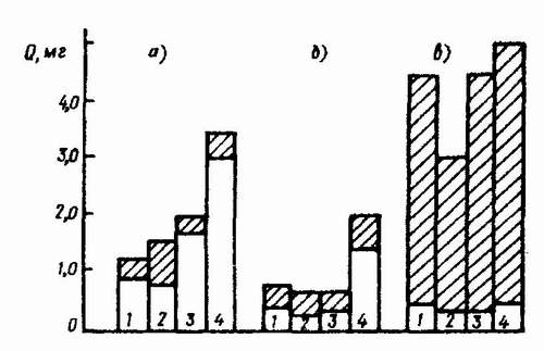 Рис. 19. диаграмма износа Q, мг (на пути 500 м) для пары трения с контробразцами - колодками (заштрихованная часть):