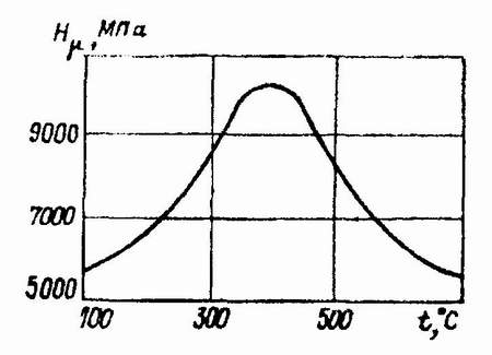 Кроме температуры на микротвердость влияет и продолжительность нагрева. Продолжительность нагрева, необходимого для получения максимальной микротвердости, сравнима со временем, не обходимым для достижения наибольшей прочности сцепления покрытия с металлом основы [1].