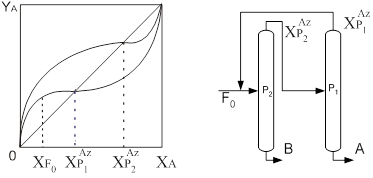 Рис.1. Разделение азеотропных смесей в комплексах, работающих под разным давлением