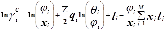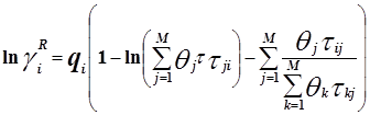 С и R – комбинаторный и остаточный вклады в коэффициент активности жидкости.