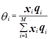 Для бинарной смеси можно выделить молекулы двух сортов, при этом молекула одного вида находится в окружении молекул другого вида. Зависимость между концентрациями компонентов внутри такого образования с общей молярной концентрацией компонентов в растворе описывается соотношением, учитывающим вероятность возникновения связей между разноименными молекулами.