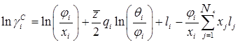 рассчитывается непосредственно по уравнению UNIQUAC с использованием параметров площади и объема Ван дер Ваальса, рассчитанных по индивидуальным структурным группам :