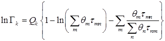 где : amn – параметр бинарного взаимодействия для групп m и n.