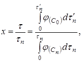Для описания растворения необходима кинетическая характеристика процесса растворения. Выразим время в безразмерных единицах – в долях времени полного растворения