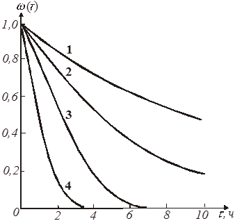 Рис.3. Зависимость доли нерастворившегося компонента от времени при различных условиях для продукта, состоящего из полностью растворившихся сферических частиц.