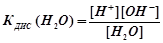 По закону действующих масс константа равновесия процесса диссоциации воды равна