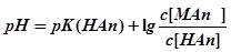 Уравнение для вычисления рН БР, состоящих из слабой кислоты НАn и ее соли МАn, можно вывести следующим образом.