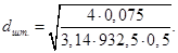 6.11 Определим внутренний диаметр штуцера, для входа воды, для конденсатора