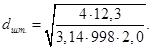 6.13 Определим внутренний диаметр штуцера, для входа пара в кипятильник