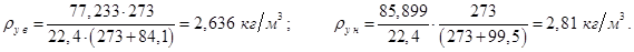 - плотности компонентов, при средней температуре жидкости вверху и внизу колонны, кг/м3.