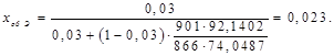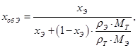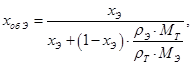 Произведём пересчёт из мольных долей в объёмные доли для этилацетата в кубовой части колонны: