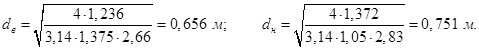 Отсюда диаметр верхней и нижней части колонны равны соответственно: