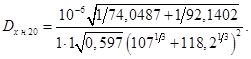 Коэффициент диффузии в жидкости для нижней части колонны при 20 0С равен: