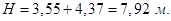 По уравнению находим общую высоту единиц переноса для верхней и нижней части колонны: