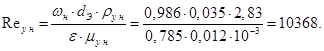 Следовательно, режим движения газа вверху и внизу колонны, турбулентный.