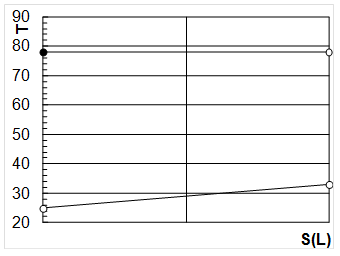 Рисунок 13 – Зависимость изменение температуры теплоносителей от поверхности теплообмена.